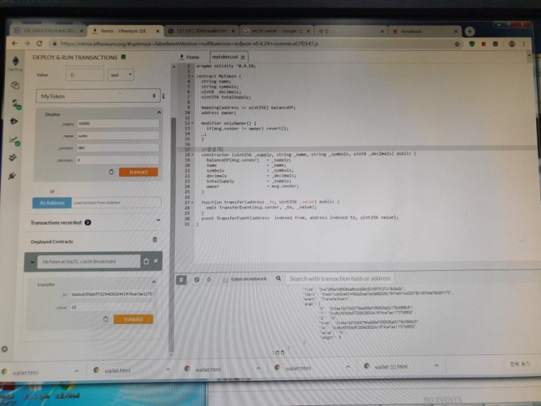 ERC20 기반 Token 만들기개발환경 : Remix, Metamask, Ganache