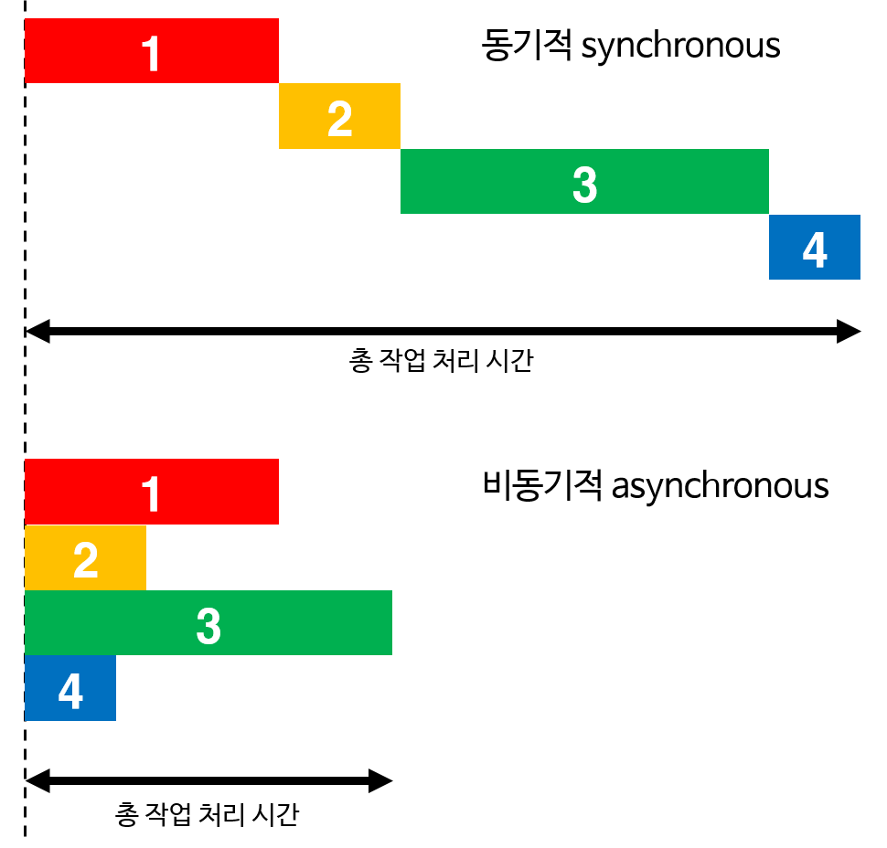 하지만 모든 작업으로 동기적으로 처리한다면 하나의 작업이 끝날 때까지 기다리는 동안