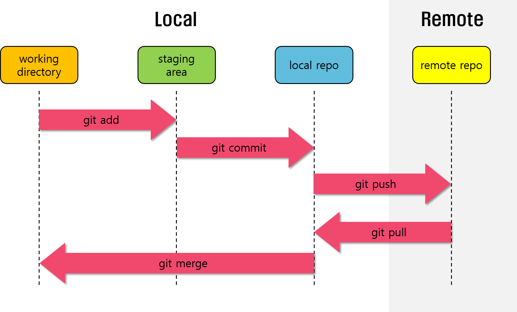 기본적으로 로컬 저장소에서 작업을 진행하고 그 결과를 원격 저장소에 동기화 시킨다.