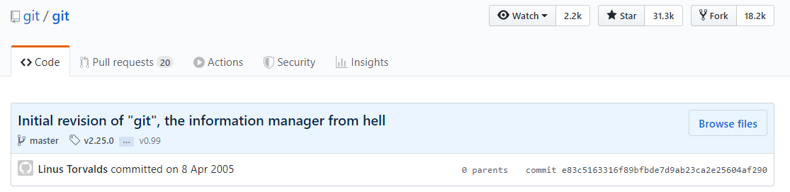 위는 깃허브에 Linus가 올린 첫 번째 수정 커밋인데 커밋 메세지가 눈길을 끈다.