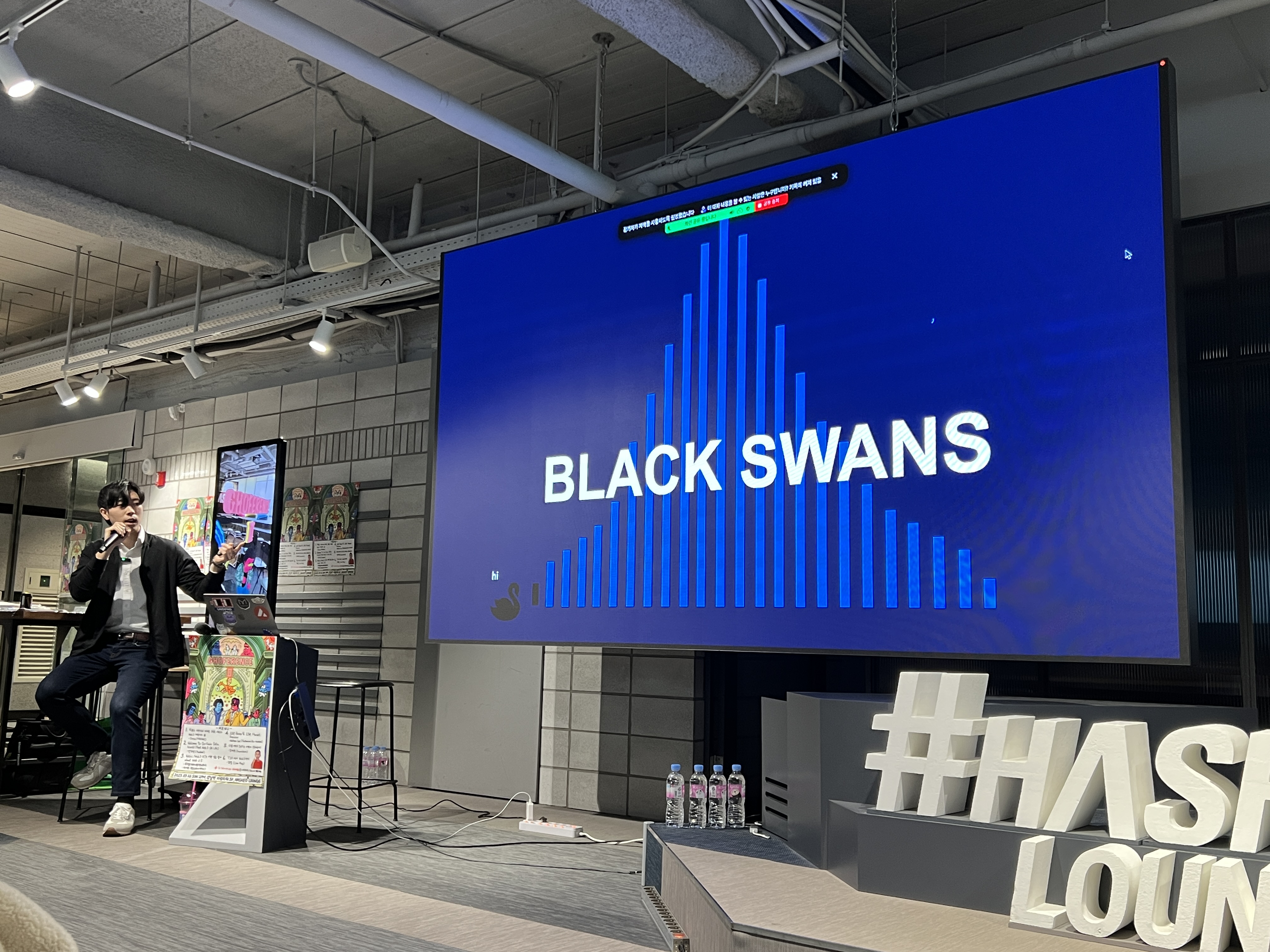 이어지는 강연은 전 해시드 팀원이자 현재 Factomind 소속이신 Nathan 님이 "22년 Recap 및 23년 Market Preview" 라는 주제로 진행됐다. 시장 예측은 사실상 불가능하다는 것을 다들 알고 있을 것이다. 하지만 시장 내에서 예측이란 무엇일까에 대한 고찰을 정말 알기 쉽게 풀어주셨다. 요즘 내가 읽고 있는 책에서도 블랙 스완에 대한 내용을 다루고 있는데, 블랙 스완을 대처하는 자세가 정말 중요한 것 같다는 생각이 많이 들었다. 자세한 내용은 Nathan님의 트위터 스레드를 참고하면 좋을 것 같다. 내용을 간단하게 요약해 보자면 아래와 같다.