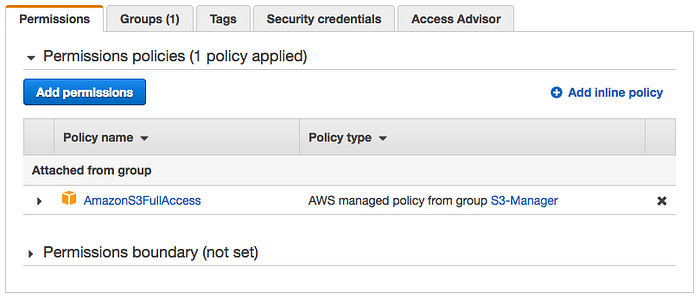 그리고 파일 읽기 및 업로드 등을 위해 AmazonS3FullAccess 권한을 부여한다.