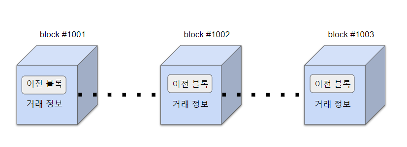 그래서 'Blockchain' 이라고 불리는 것이며 각각의 '블록'이 서로 연결되어 '체인'을 형성하는 것이다.