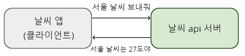 //날씨 API 사용 fetch('http://서버주소/weather?q=Seoul') .then(function(resp) { return resp.json(); // 응답 형식에 따라 resp.text() 가 될 수도 있다 }) .then(function(json) { console.log(json); // { tempature: 27 } });* 날씨 API