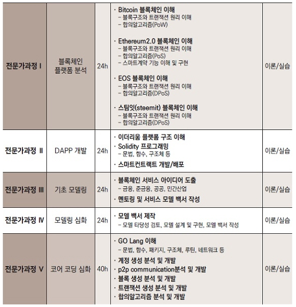 블록체인 캠퍼스의 구체적인 커리큘럼이다.