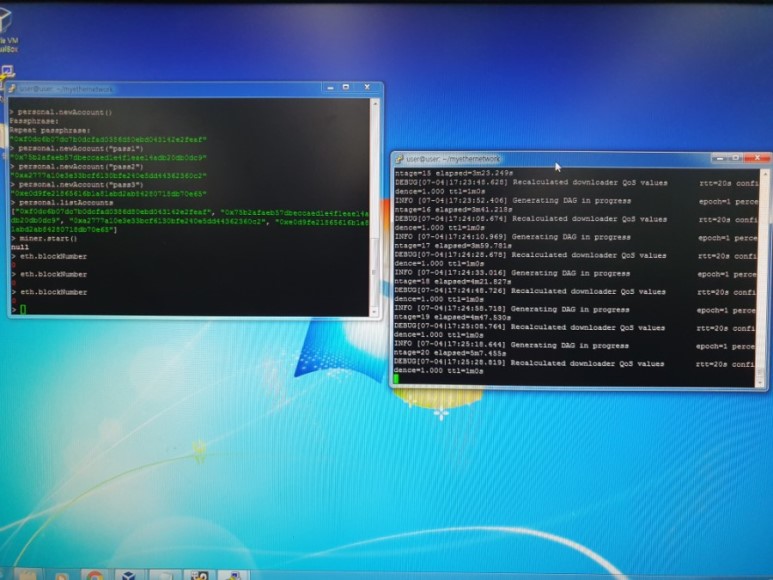이더리움 블록을 생성하고 송금하는 과정이었는데,